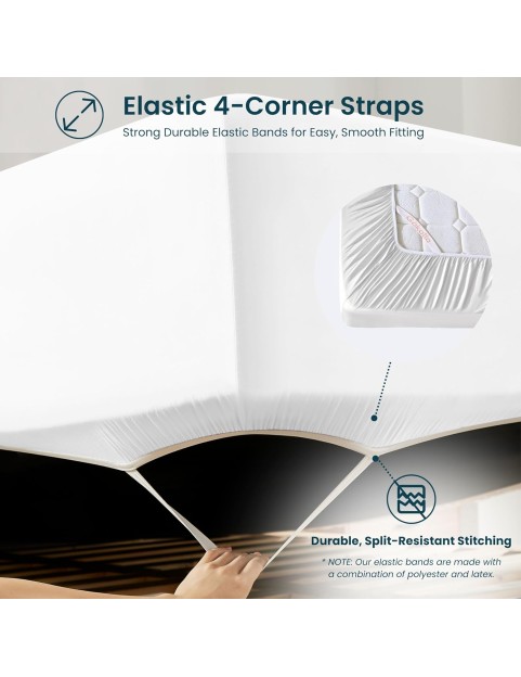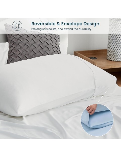 Queen Size Bed Sheets 6 Piece Set, 100% Rayon Derived from Bamboo, Cooling for Hot Sleepers-Luxury Breathable Soft Sheets, Deep Pocket 16" Fitted Sheet with Elastic Corner Straps, Bright White